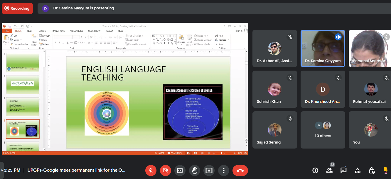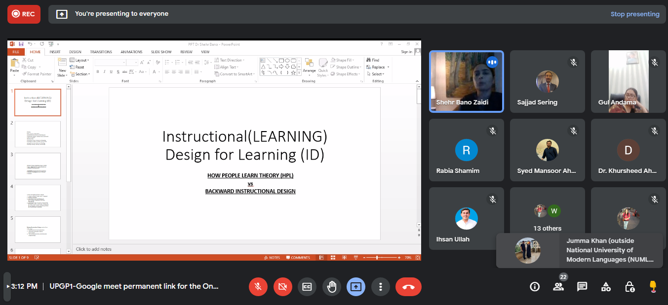 Phase 1 of first Grant was held online on zoom. The trainers were teachers from NUML who went University of North Texas for training. The online session started on 28th September and ended on 7th October.